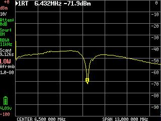 Setting things up the same as for the mic. amp., 1 KHz. sine wave set the input level and volume control to just below the point of distortion on the output signal. This is kind of tricky because of the gain of the LM386 is set quite high and you can get the output to distort very easily. I turned on the sweep from 200 Hz. to 20 KHz. and let it run for a while with peak hold turned on. I got a linear response from 200 to just over 8 KHz. where it started to drop off a little. Overall the AF stage has quite a bit of gain, that can start to distort fairly quickly, but has a flat response over the frequency range of interest for communications equipment. Gain on the LM386 can be reduced by decreasing the value of th capacitor between pins 1 and 8 of the IC, if desired. Thats it for testing audio amplifier stages. AF filter response can be tested iin the same way.