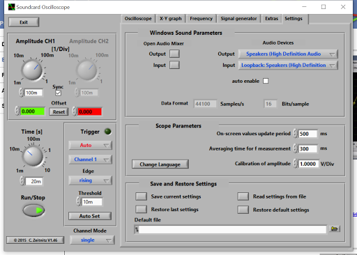 I am only going to use Soundcard Oscilloscope for this post. After doing the install you get the main screen.